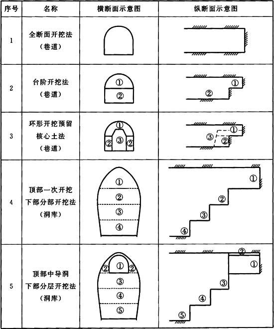3.0.2 洞庫工程施工應(yīng)綜合地質(zhì)條件、技術(shù)手段、經(jīng)濟(jì)指標(biāo)等因素,合理選擇施工方法。