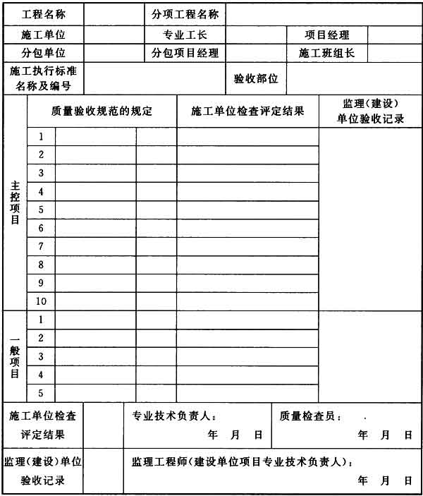 表D.0.1 檢驗(yàn)批質(zhì)量驗(yàn)收記錄