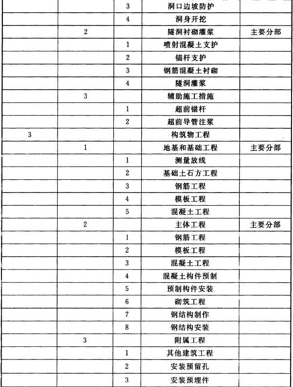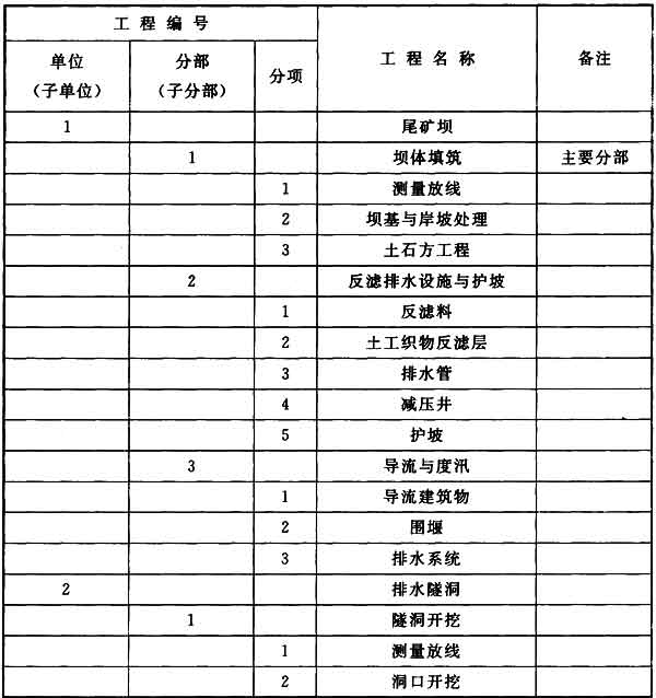 12.0.1 尾礦設(shè)施施工質(zhì)量驗(yàn)收應(yīng)在施工單位自檢合格的基礎(chǔ)上,按檢驗(yàn)批、分項(xiàng)工程、分部(子分部)工程、單位(子單位)工程進(jìn)行。具體劃分應(yīng)按表12.0.1填列。