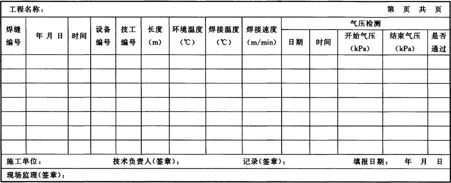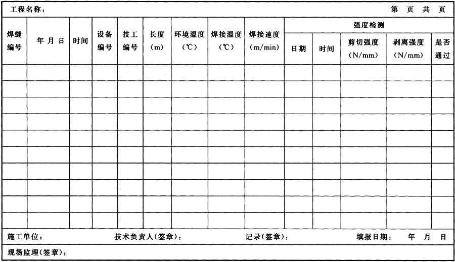 附錄E 高密度聚乙烯(HDPE)土工膜焊縫檢測(cè)記錄