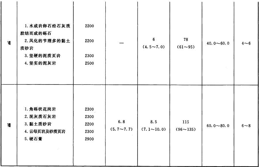 硬巖 0.55~0.65 0.60~0.80 300~500