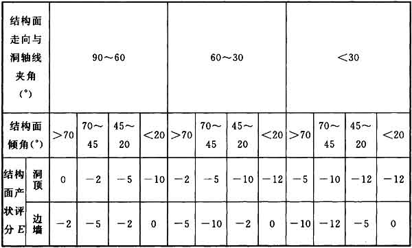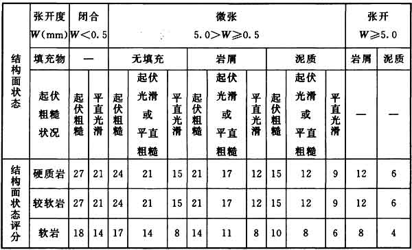 表B.0.3-3 結(jié)構(gòu)面狀態(tài)評(píng)分