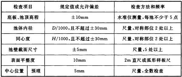 10.0.2 濃縮池的施工應(yīng)按現(xiàn)行國(guó)家標(biāo)準(zhǔn)《混凝土結(jié)構(gòu)工程施工質(zhì)量驗(yàn)收規(guī)范》GB 50204的有關(guān)規(guī)定執(zhí)行,完工后交付安裝前應(yīng)按表10.0.2的要求進(jìn)行中間驗(yàn)收。
