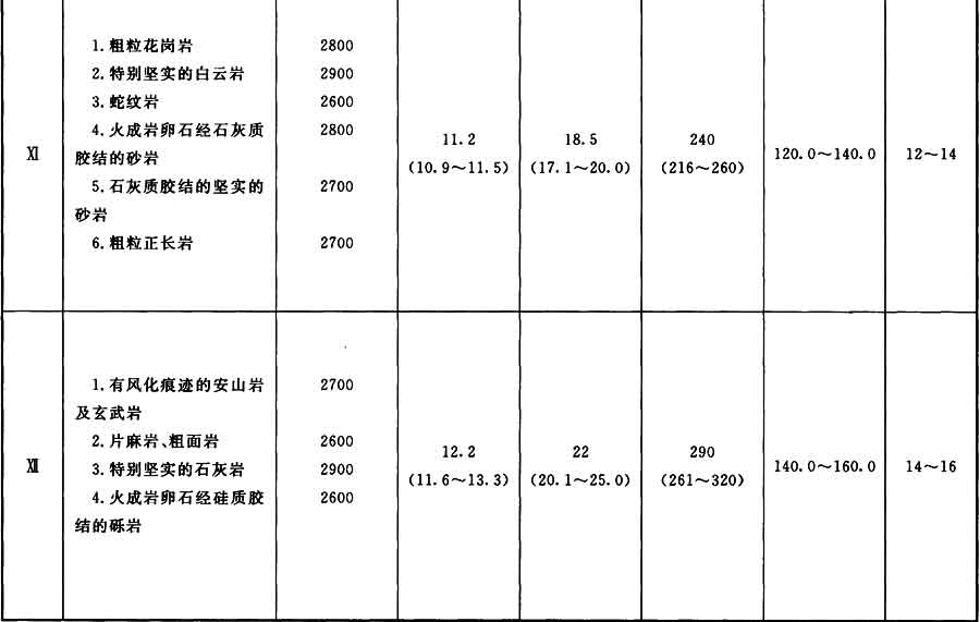堅(jiān)硬巖石 50~150 1.3~1.5