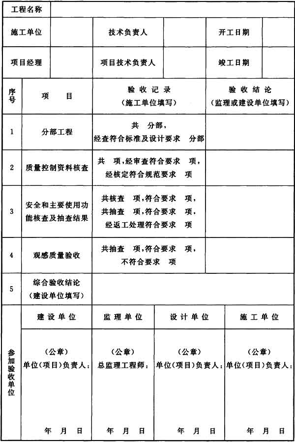 1 單位(子單位)工程所含分部(子分部)工程均應(yīng)驗(yàn)收合格;