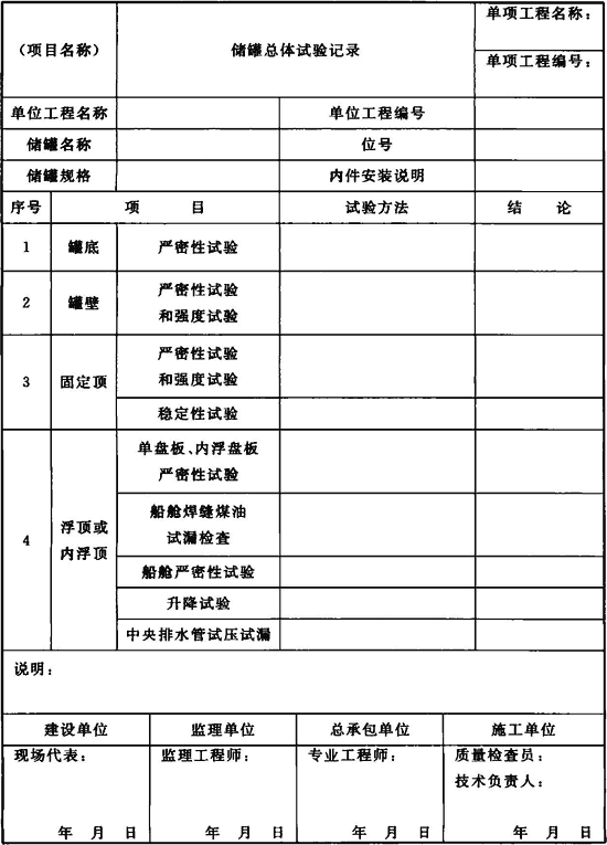 C.0.11 儲罐總體試驗(yàn)記錄應(yīng)按表C.0.11填寫。大牛工程師