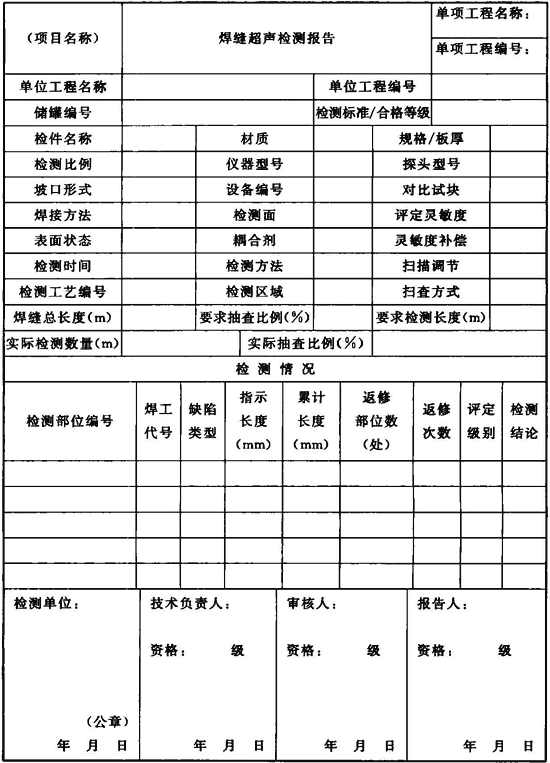 C.0.6 焊縫超聲檢測報(bào)告應(yīng)按表C.0.6填寫。報(bào)告模板_資料共享_資料庫