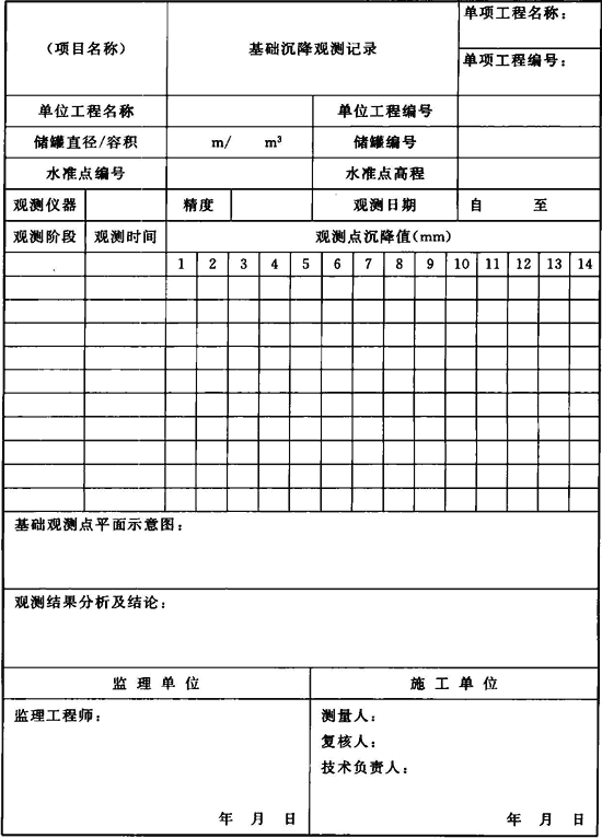 表C.0.12 基礎(chǔ)沉降觀測記錄