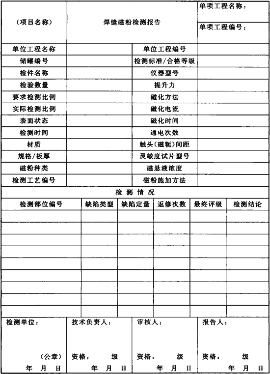 表C.0.7 焊縫磁粉檢測報(bào)告