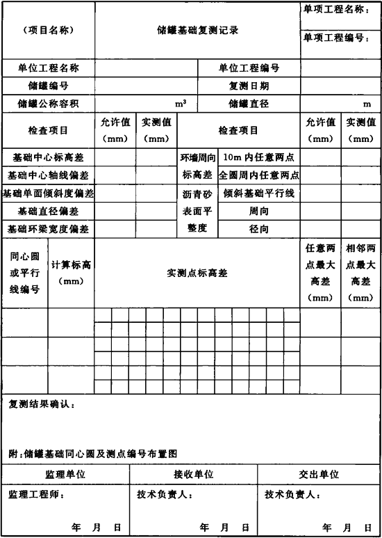 C.0.2 儲罐基礎(chǔ)復(fù)測記錄應(yīng)按表C.0.2填寫。大牛工程師