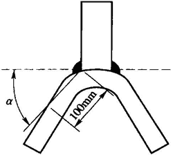 1 變形角度α不小于15°時(shí)無裂紋應(yīng)判定為合格;