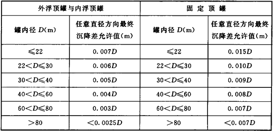 表B.0.6 儲罐基礎(chǔ)徑向沉降差允許值