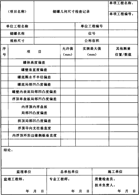 表C.0.4 儲罐幾何尺寸檢查記錄