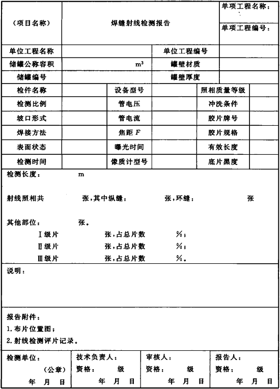 C.0.5 焊縫射線檢測報(bào)告應(yīng)按表C.0.5填寫。大牛工程師