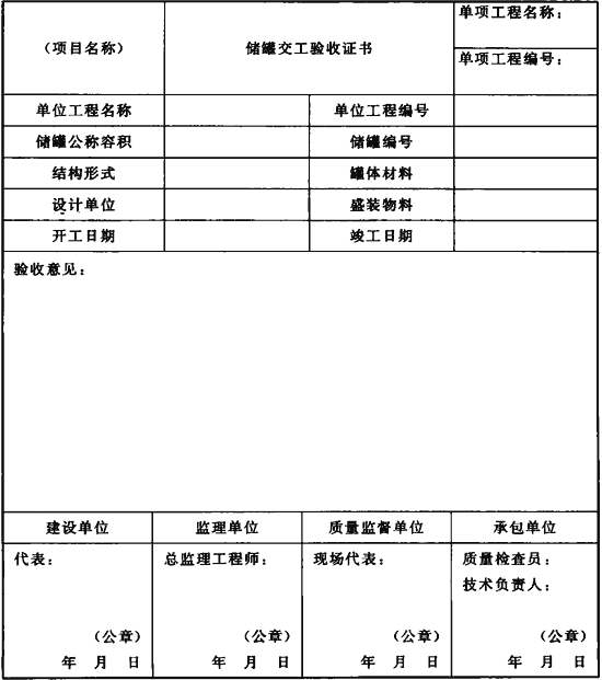 C.0.1 儲罐交工驗(yàn)收證書應(yīng)按表C.0.1填寫。大牛工程師