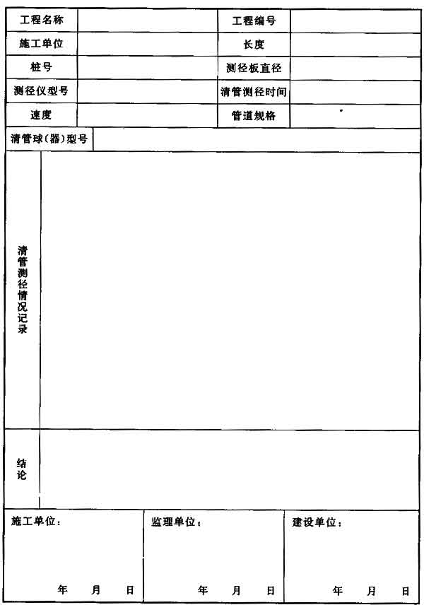 B.0.14 管線清管、測(cè)徑記錄宜符合表B.0.14的規(guī)定。