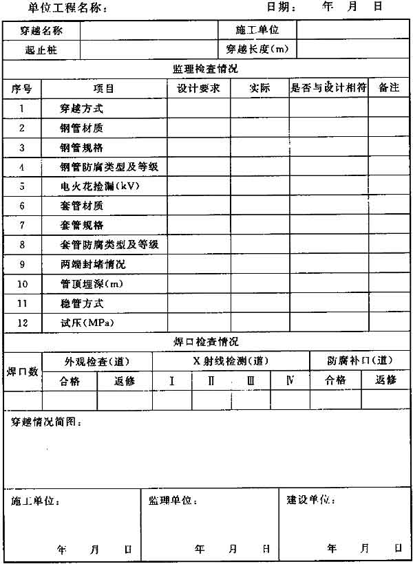 表B.0.9 管線穿越公路、鐵路、河渠質(zhì)量檢查記錄