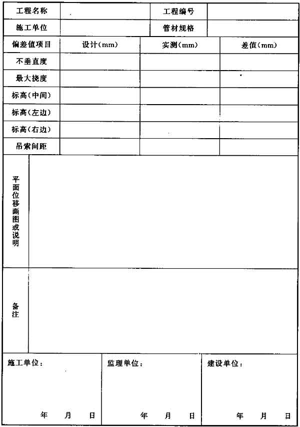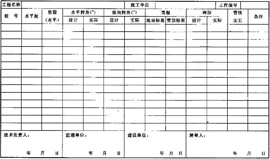 B.0.11 穿越管線就位檢查測(cè)量記錄宜符合表B.0.11的規(guī)定。