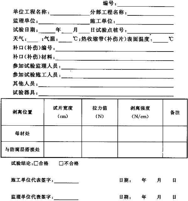 表B.0.16 防腐補(bǔ)口、補(bǔ)傷剝離強(qiáng)度試驗(yàn)報(bào)告