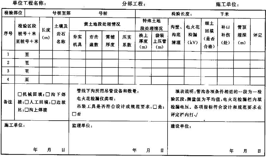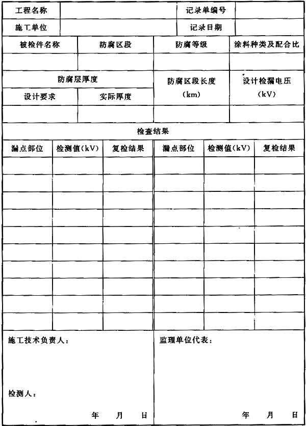 B.0.18 防腐絕緣層電火花檢漏記錄宜符合表B.0.18的規(guī)定。