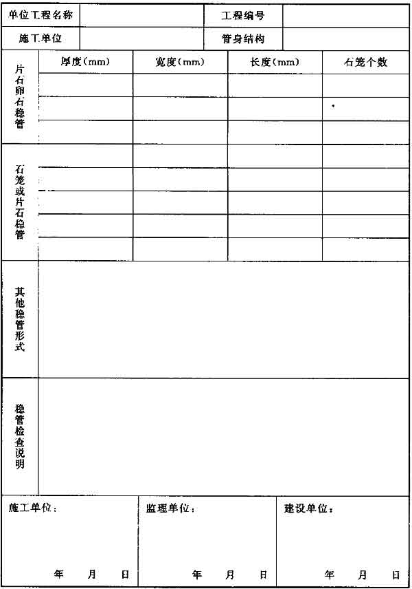 B.0.10 穿越管線水下穩(wěn)管檢查記錄宜符合表B.0.10的規(guī)定。