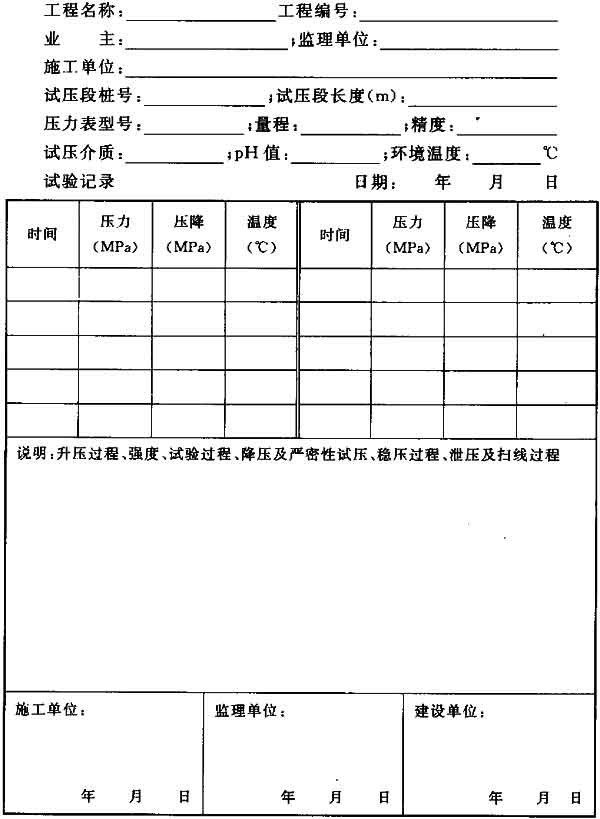 表B.0.15 壓力試驗(yàn)及通球掃線檢查記錄