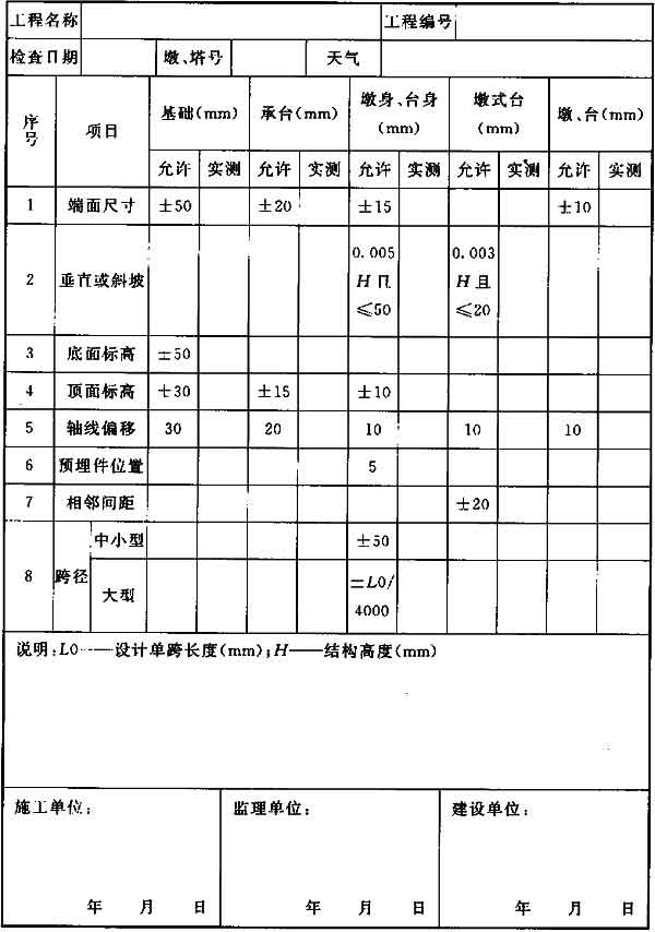 B.0.13 跨越混凝土墩檢查記錄宜符合表B.0.13的規(guī)定。