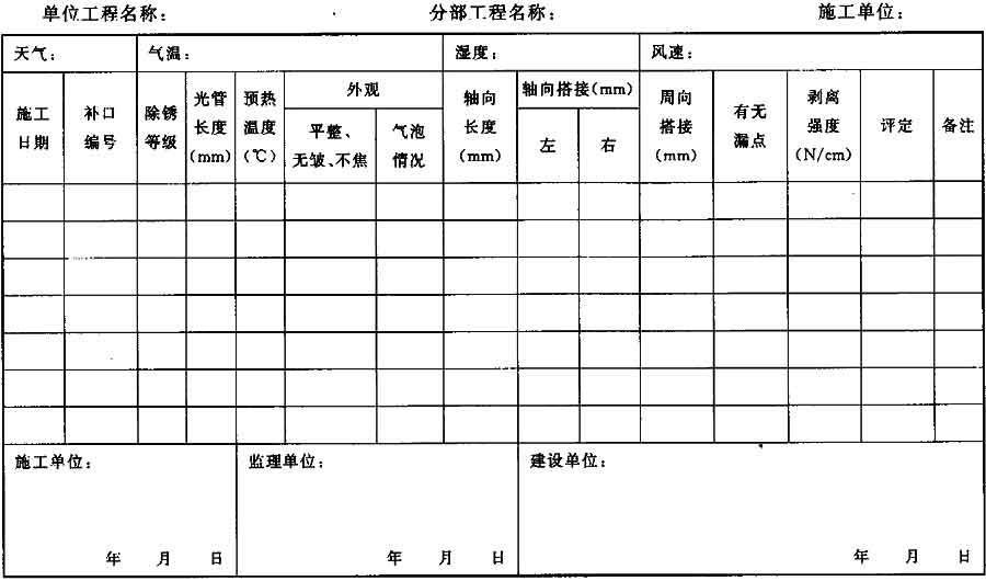 表B.0.17 管線防腐補(bǔ)口質(zhì)量檢查記錄
