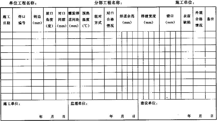 B.0.5 焊口返修質(zhì)量檢查記錄宜符合表B.0.5的規(guī)定。