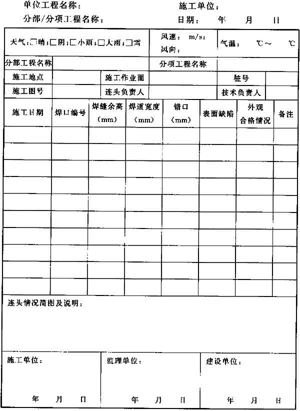 表B.0.5 焊口返修質(zhì)量檢查記錄