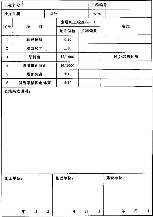B.0.12 跨越索塔施工檢查記錄宜符合表B.0.12的規(guī)定。