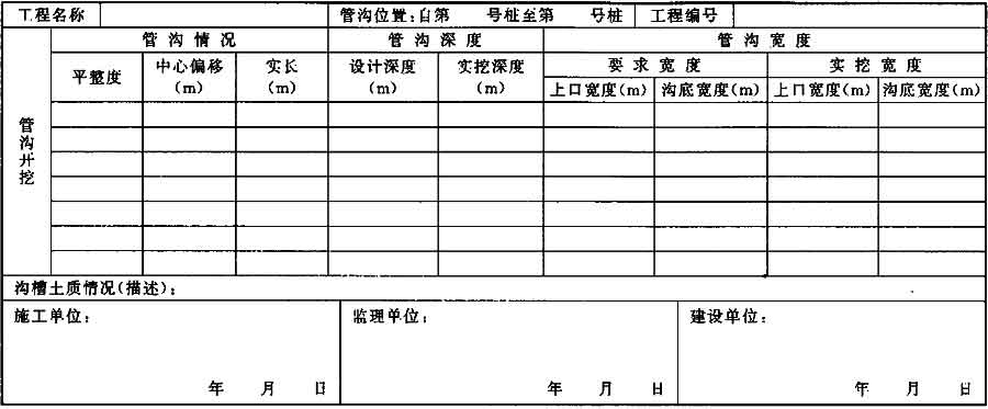 B.0.1 管溝開挖檢查記錄宜符合表B.0.1的規(guī)定。