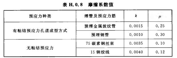 H.0.8預應力筋孔道每米長度局部偏差的摩擦系數(shù)