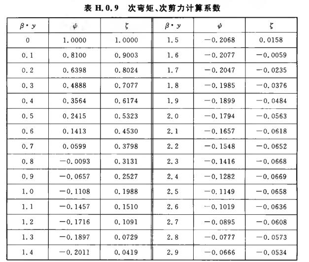 H.0.9預應力張拉的次彎矩、次剪力計算系數(shù)按表H.0.9。