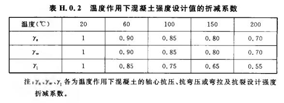 H.0.2溫度作用下混凝土強度設計值的折減系數(shù)可按表H.0.2。