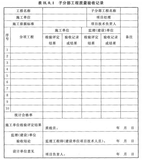 H.0.1子分部工程質(zhì)量驗收應(yīng)按表H.0.1進行記錄。