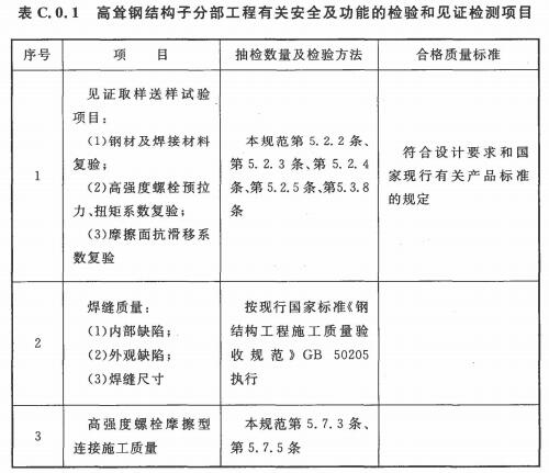 C.0.1高聳鋼結(jié)構(gòu)子分部工程有關(guān)安全及功能的檢驗和見證檢測應(yīng)按表C.0.1規(guī)定的項目進行。