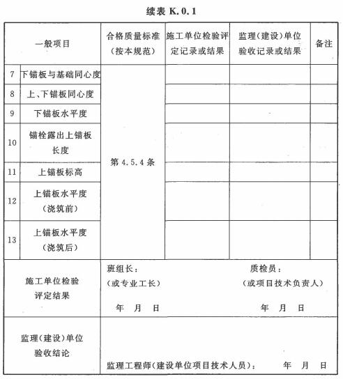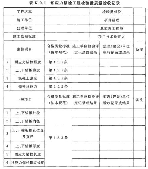 K.0.1預應(yīng)力錨栓工程檢驗批質(zhì)量驗收應(yīng)按表K.0.1進行記錄。