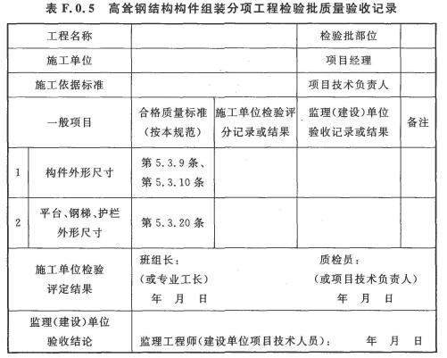 F.0.5 高聳鋼結(jié)構(gòu)構(gòu)件組裝分項工程檢驗批質(zhì)量驗收應(yīng)按表F.0.5進行記錄。