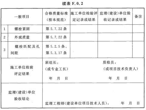 F.0.2 高聳鋼結(jié)構(gòu)普通螺栓連接分項工程檢驗批質(zhì)量驗收應(yīng)按表F.0.2進行記錄。
