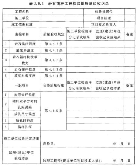 J.0.1巖石錨桿工程檢驗批質(zhì)量驗收應(yīng)按表J.0.1進行記錄。