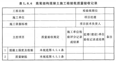 L.0.6 高聳結(jié)構(gòu)混凝土施工檢驗批質(zhì)量驗收應(yīng)按表L.0.6進行記錄。