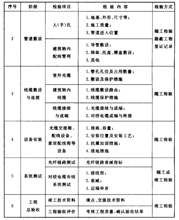 7.0.2 住宅區(qū)和住宅建筑內(nèi)光纖到戶通信設(shè)施工程宜按表7.0.2所列方式進(jìn)行檢驗(yàn),檢驗(yàn)結(jié)果應(yīng)作為工程竣工資料的組成部分。(免費(fèi)下載)GB 50847-2012 住宅區(qū)和住宅建筑內(nèi)光纖到戶通信設(shè)施工程施工及驗(yàn)收規(guī)范