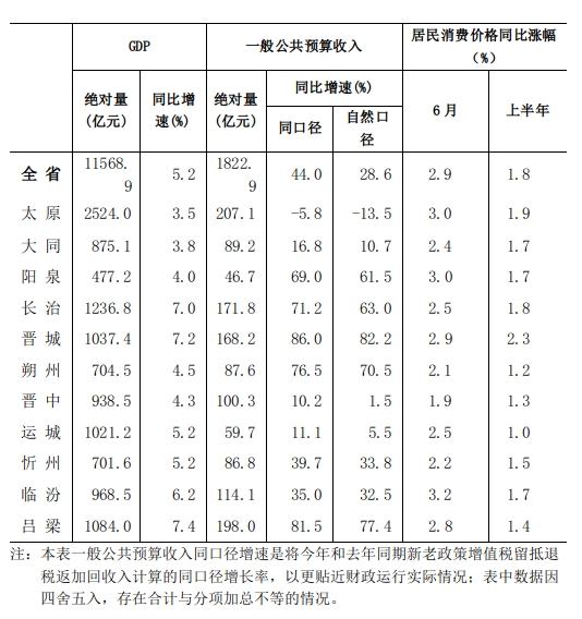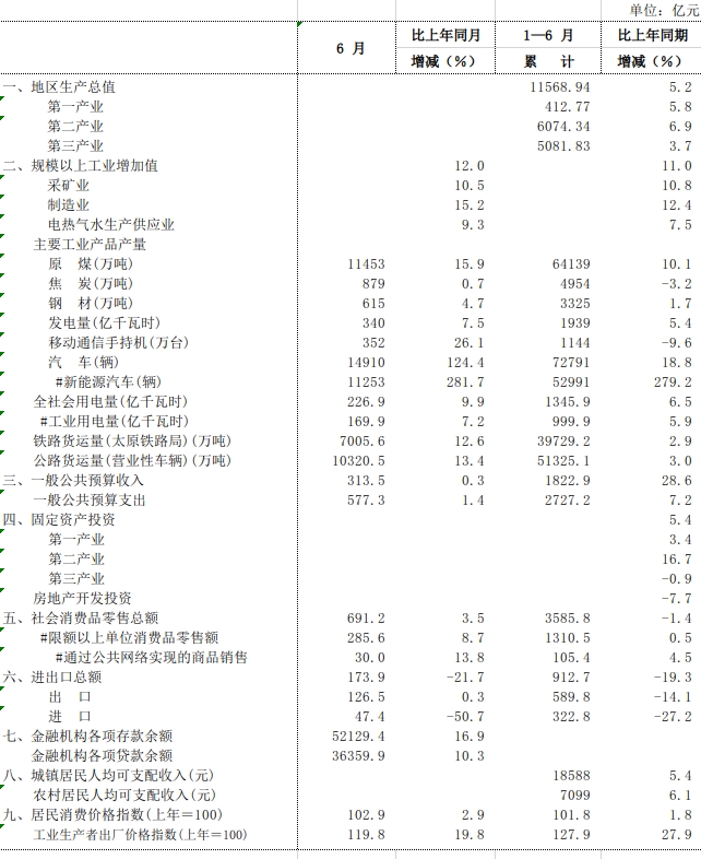 (山西?。?022年上半年全省經(jīng)濟運行情況