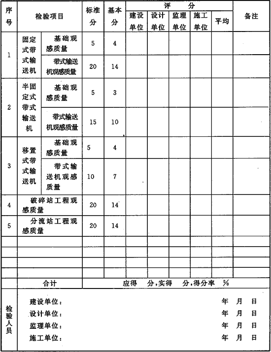 注:1 表中的“檢驗(yàn)項(xiàng)目”內(nèi)有缺項(xiàng)(工程無該項(xiàng))時,該項(xiàng)不檢驗(yàn)、不參加計(jì)分,可不填入表內(nèi);