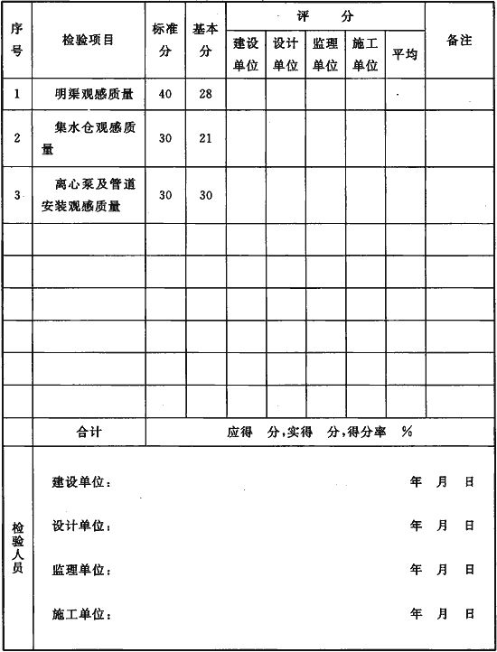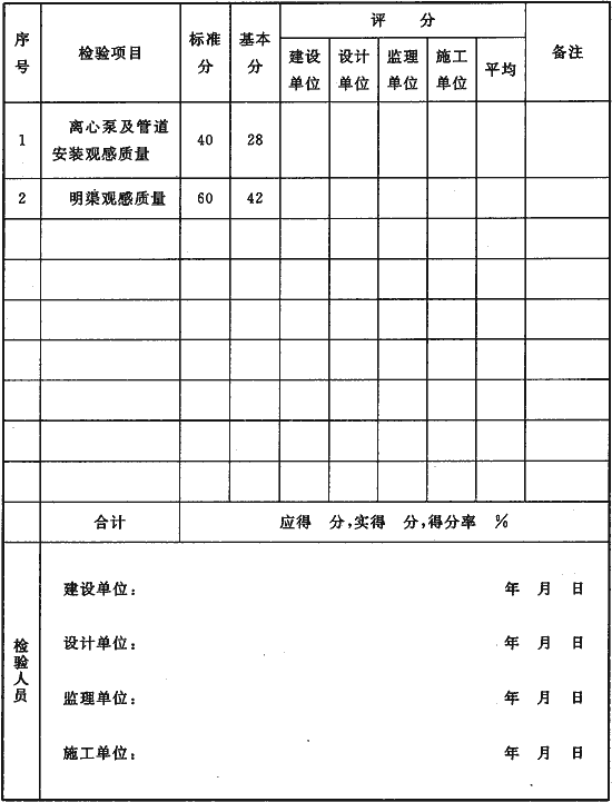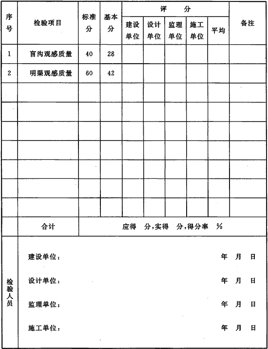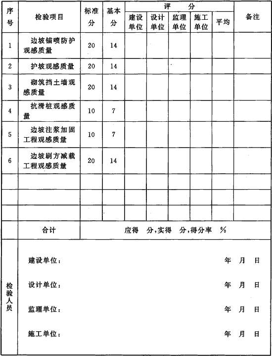 注:1 表中的“檢驗(yàn)項(xiàng)目”內(nèi)有缺項(xiàng)(工程無該項(xiàng))時,該項(xiàng)不檢驗(yàn)、不參加計(jì)分,可不填入內(nèi);