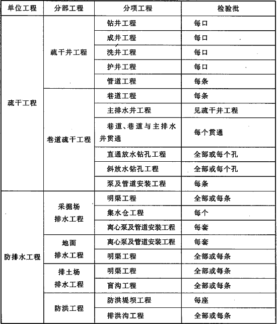 表B 露天煤礦工程單位工程與相應(yīng)的分部工程、分項(xiàng)工程、檢驗(yàn)批