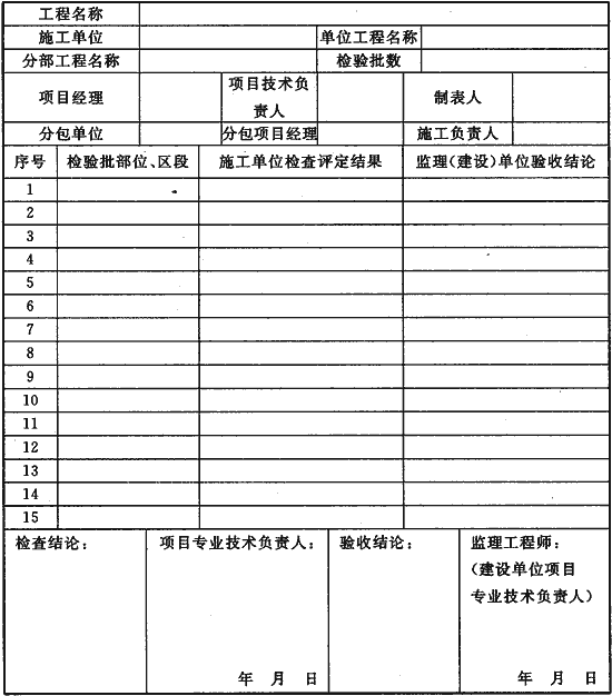 附錄E 分部工程質(zhì)量驗(yàn)收記錄