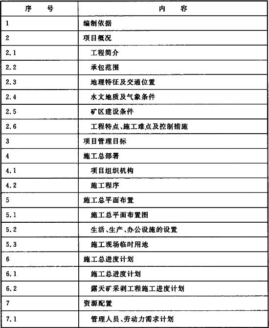 1 露天金屬礦施工組織設(shè)計(jì)應(yīng)滿足合同要求;