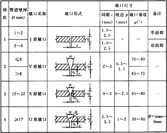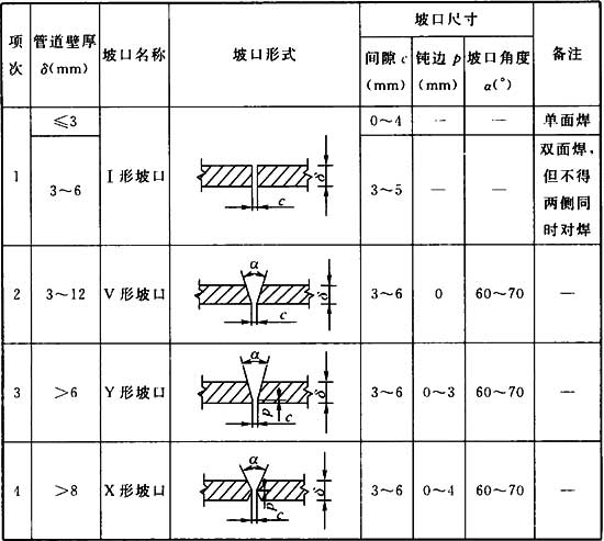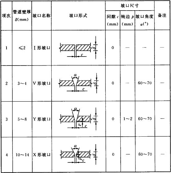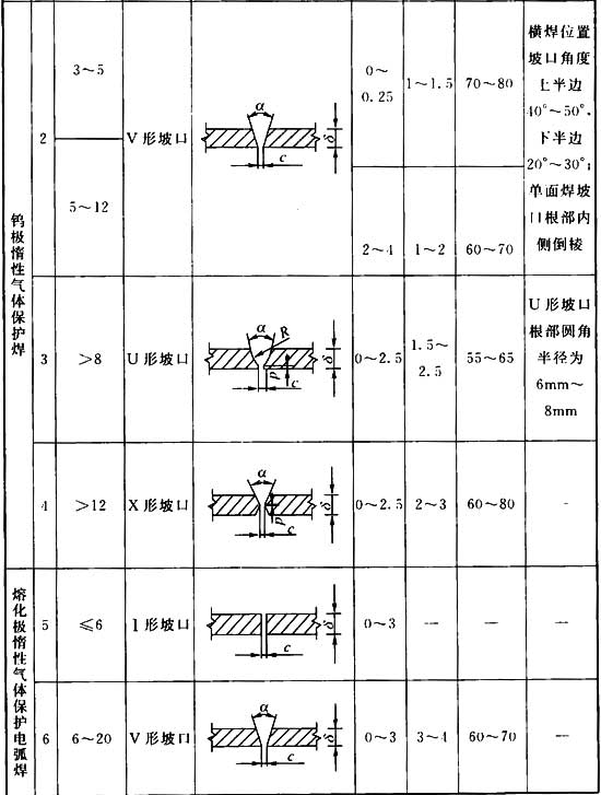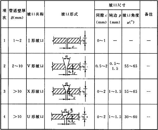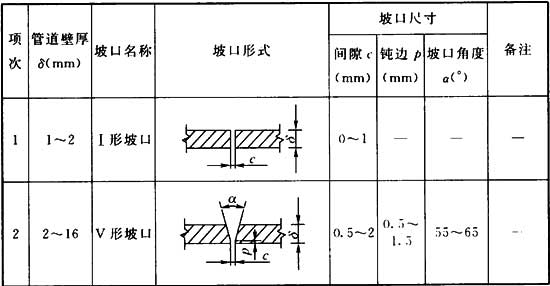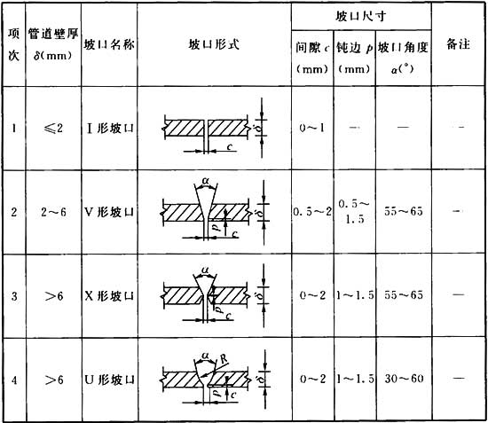 B.0.5 鎳及鎳合金管道焊接坡口形式及尺寸宜符合表B.0.5的規(guī)定。